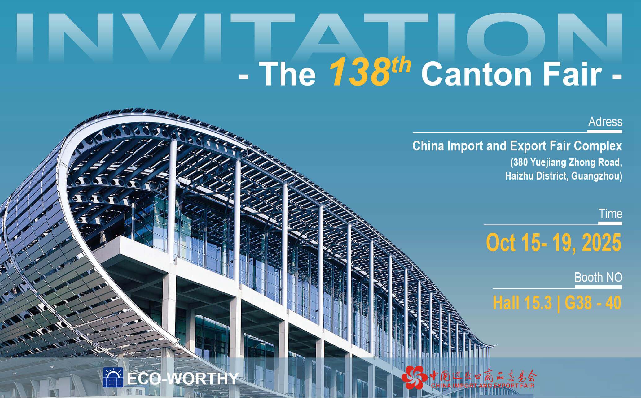 GUANGZHOU, CHINA – Eco-Worthy cordially invites you to visit us at Booth G38-40 during the Phase 1 of the 138th China Import and Export Fair (Canton Fair). We specialize in innovative technology designed to deliver reliable and intelligent energy solutions for your business.